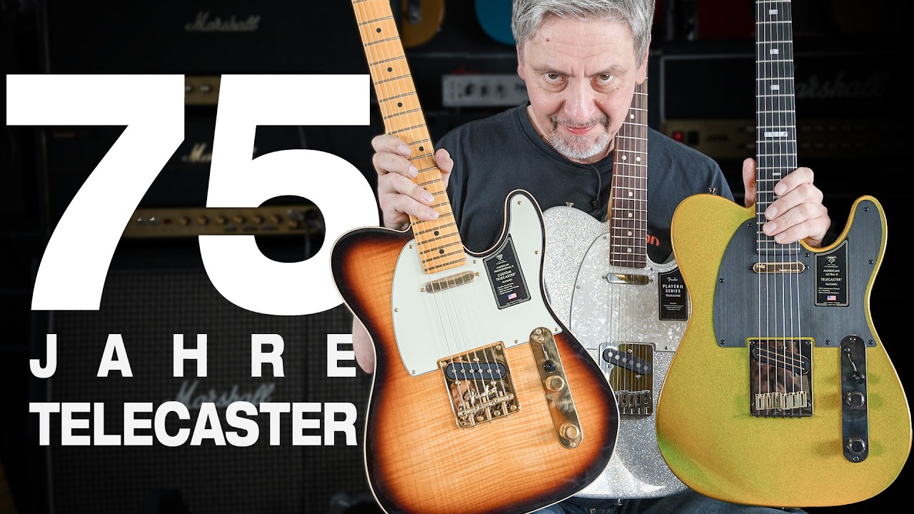 Anläßlich des 75. Jubiläums stellt Fender eine Serie 75th Anniversary Gitarren und Bässe vor. Die Vintera II Roadworn 1951 Telecaster ist eine historisch korrekte Replika der Ur-Tele: in Butterscotch Blonde lackierter Eschenbody, verschraubter Ahorn Hals, authentisches 1-Ply "Blackguard", Vintage Tuner. Vintage Bridge mit 3 Messingreitern und ein Set Pure Vintage 1951 Telecaster Single Coils. Das Ganze in geagetem Road Worn Finish.